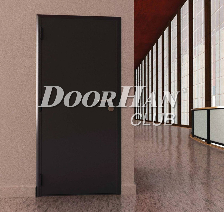 Двери DoorHan противопожарные EI 60 одностворчатые глухие RAL7035(серый), накладная рама, ручка на планке черная нейлон, м/р 72 мм, цилиндр "ключ-ключ"