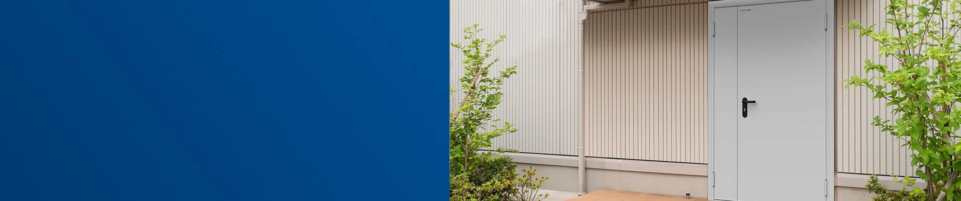 С наружной и внутренней стороны дверь окрашена порошковой краской в RAL7035 (светло-серый) и имеет структуру поверхности «шагрень». Такое исполнение очень практично в эксплуатации — скрывает мелкие царапины и загрязнения, легко очищается без использования специальных средств. Можно окрасить в любой цвет по карте RAL.
